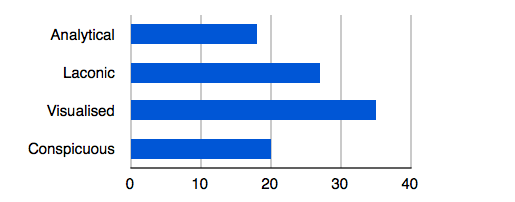 - The analysis of all 890 newspaper articles proves that visualisation is a widespread phenomenon in today’s media values. This can be explained by the massive background of audio-visual culture or with efforts to simplify storytelling through the use of visual input.